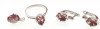 Ezüst(Ag) lila köves fülbevalópár, gyűrűvel és függővel, jelzett, bruttó: 8,7 g