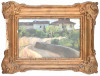Jelzés nélkül: Útkanyar. Olaj, karton, üvegezett, sérült keretben, 14x20,5 cm
