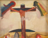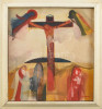 Szabados János (1937-)l: Kereszt. Olaj, falemez, kopott keretben, 40x36cm