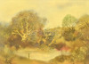 Szekeres Emil (1934-2019): Erdei tó. Olaj, farost. Jelzett. Hátoldalán autográf felirattal és Koszta József Galéria címkéjével. Fa keretben. 50x68 cm.